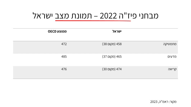 הרשות הארצית למדידה והערכה (2023). מחקר פיזה 2022 PISA)) אוריינות במתמטיקה, במדעים ובקריאה: תמונת מצב תלמידים בני 15.