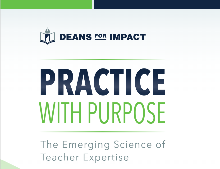 Deans for Impact הוא ארגון ששם לו למטרה לשפר את הכשרת המורות והמורים בארצות הברית על בסיס ממצאי מחקר - הם מובילים תוכניות ומפתחים חומרים עבור כל העוסקים במסלולי הכשרת המורים. יש להם מקורות מידע רבים ומגוונים - ביניהם מדריך המסכם עקרונות מובילים במדעי הלמידה (עליו כבר כתבנו בעבר פה בבלוג), ומדריך לעקרונות לתרגול מועיל (תרגול מכוון - Deliberate Practice) ויישומם בהכשרת מורים.