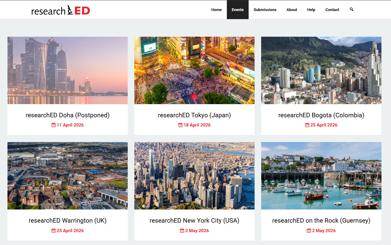 ואם יש בתכנון נסיעה ליעד כלשהו מסביב לעולם, שווה לבדוק כאן אם יש כנס של ResearchED ביעד - מדובר בכנסים עבור מורות ומורים ובהובלתם, שבהם מדברים ישירות על יישום בכיתה. רמה גבוהה של חיבור לפרקטיקה - מומלץ בחום.